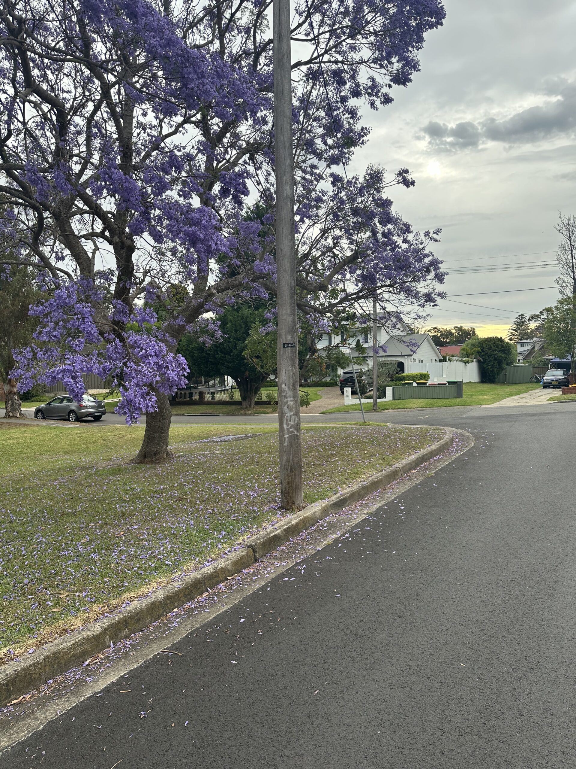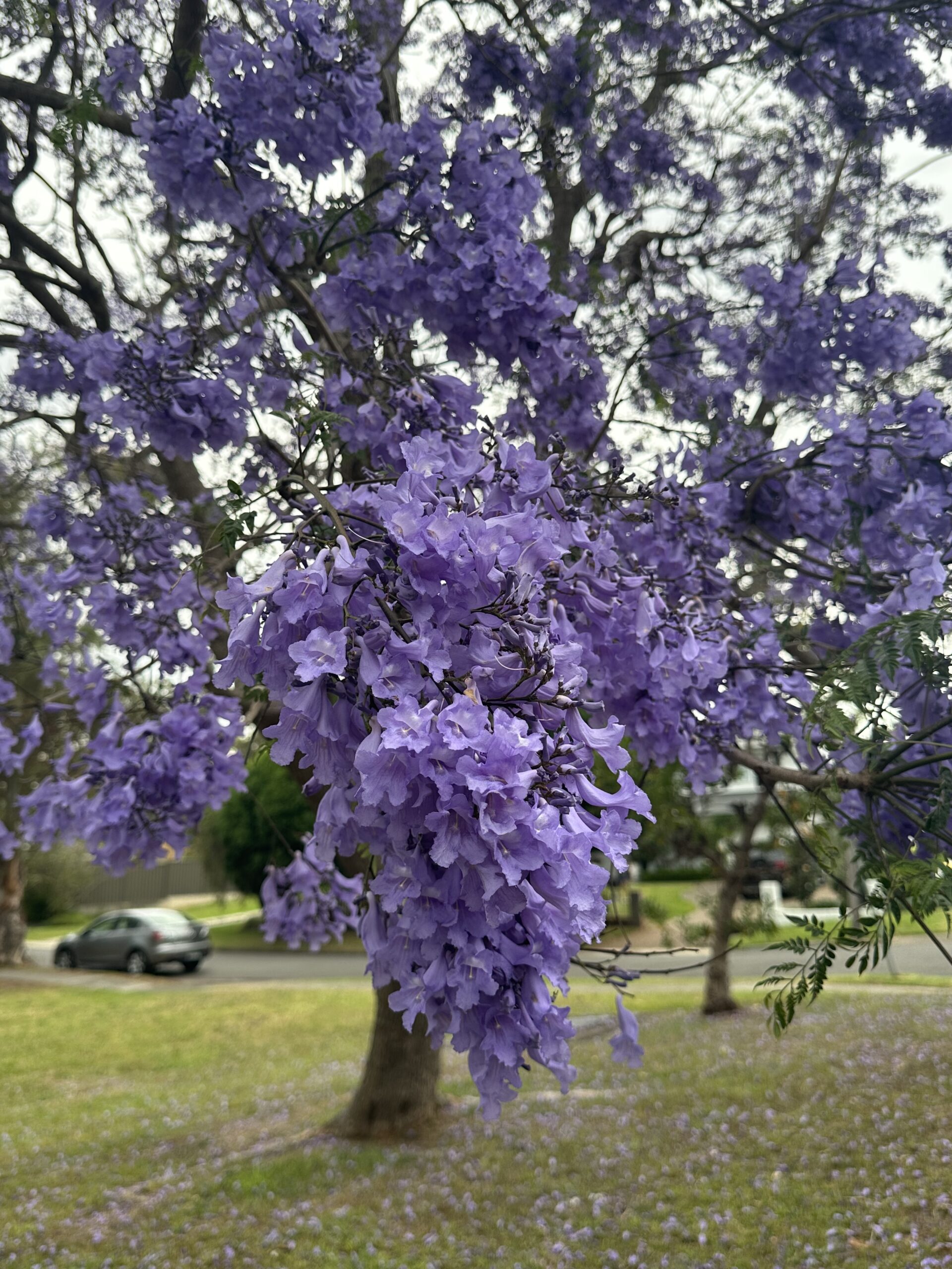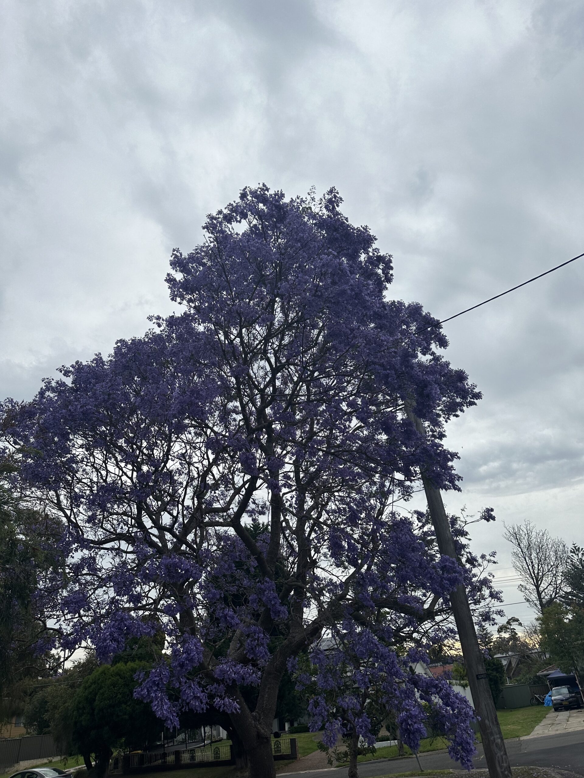 When I was walking up to the tree, it stopped raining for a second and the wind blew a bit more for around a minute. After that minute of wind, it stopped completely. I couldn’t feel much of a breeze. The sun was poking slightly through one of the rainclouds. Not enough to be blinding, but enough that you could see it. Purple petals were falling from the tree, bees were buzzing around the flowers and petals that were all around this tree, and the air smelt like honey. Lorikeets came to sit on the branches of this tree, I could see ants crawling at the base of the tree, and some caterpillars crawling up the base of the tree trunk. It didn’t even feel real. No people were around, it was quiet, no noise or anything. I could hear the chirps of the birds and the buzzing of the bees as they flew all around me. I put some music on and sat at a bench located under the tree. It was so beautiful. The feeling of being around so many animals just made me feel better.