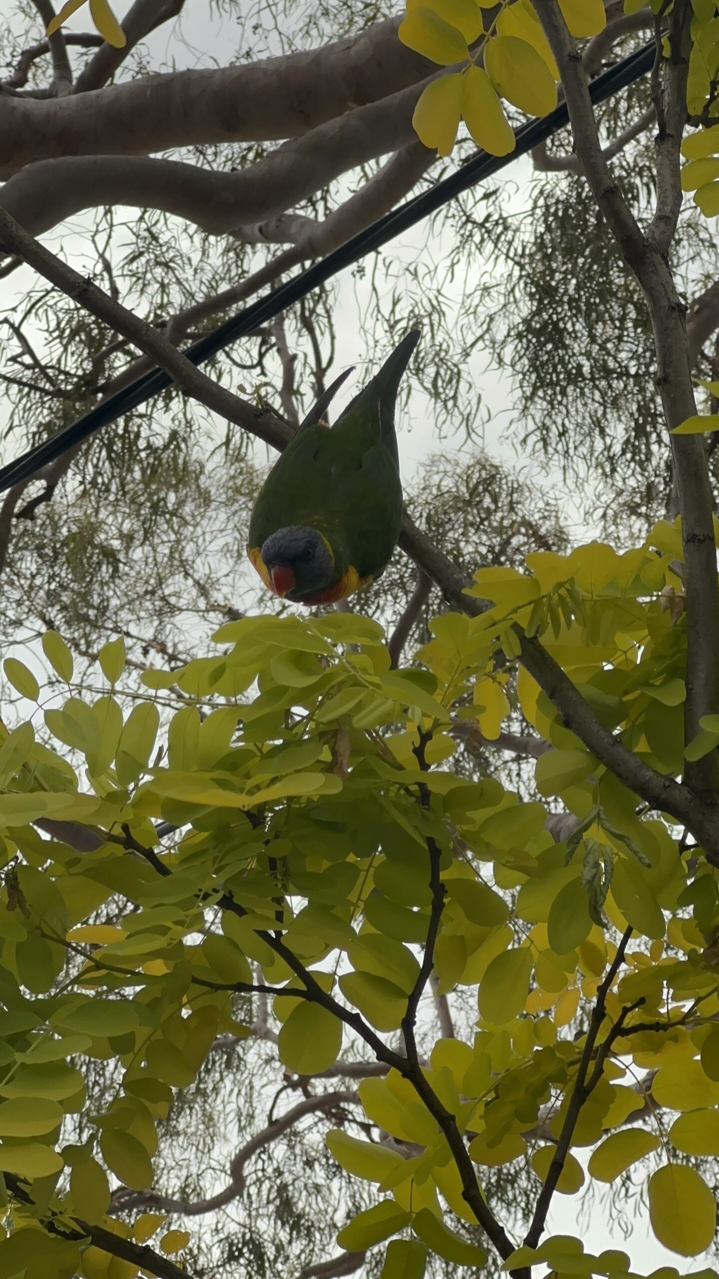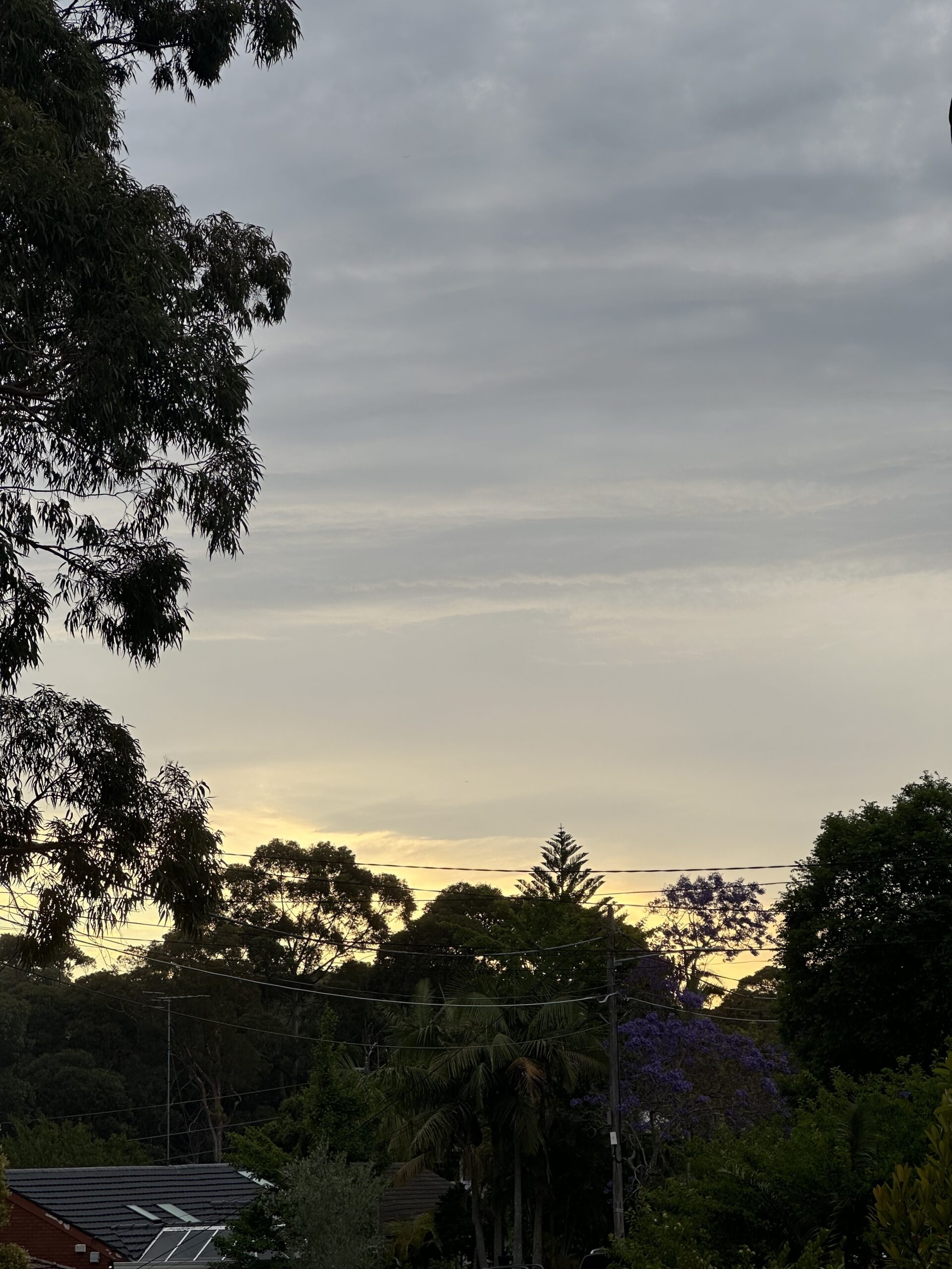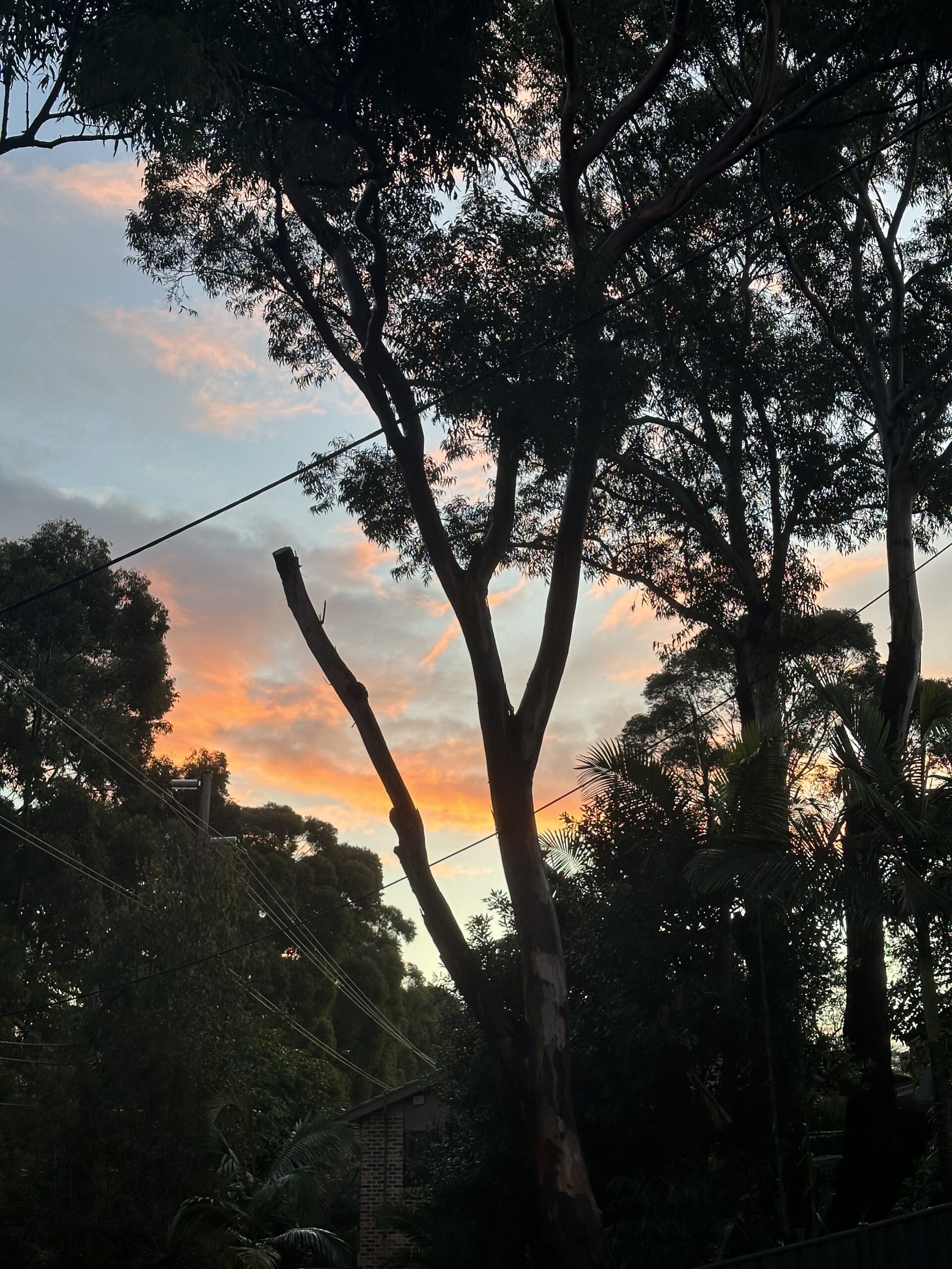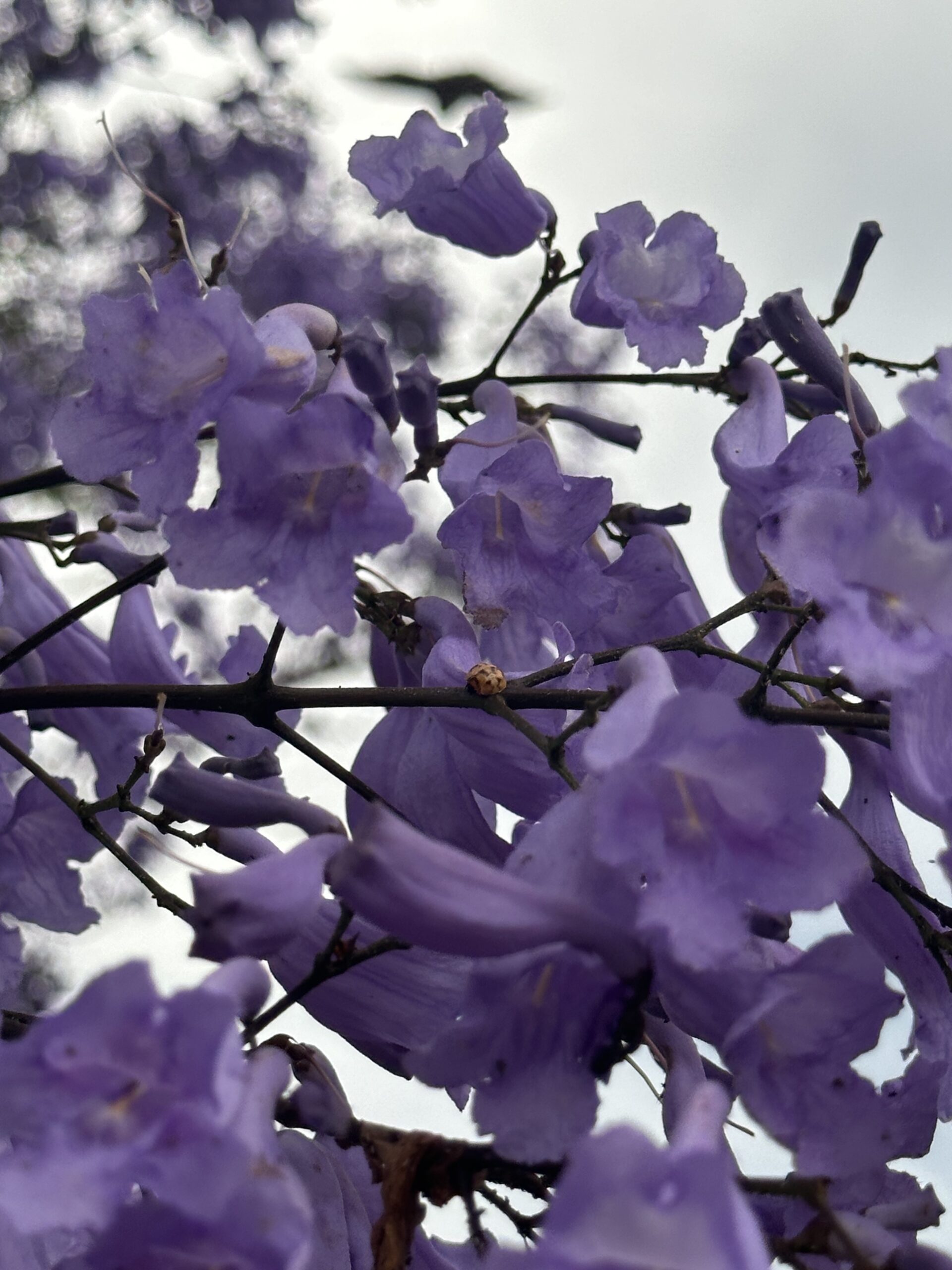 When I was walking up to the tree, it stopped raining for a second and the wind blew a bit more for around a minute. After that minute of wind, it stopped completely. I couldn’t feel much of a breeze. The sun was poking slightly through one of the rainclouds. Not enough to be blinding, but enough that you could see it. Purple petals were falling from the tree, bees were buzzing around the flowers and petals that were all around this tree, and the air smelt like honey. Lorikeets came to sit on the branches of this tree, I could see ants crawling at the base of the tree, and some caterpillars crawling up the base of the tree trunk. It didn’t even feel real. No people were around, it was quiet, no noise or anything. I could hear the chirps of the birds and the buzzing of the bees as they flew all around me. I put some music on and sat at a bench located under the tree. It was so beautiful. The feeling of being around so many animals just made me feel better.